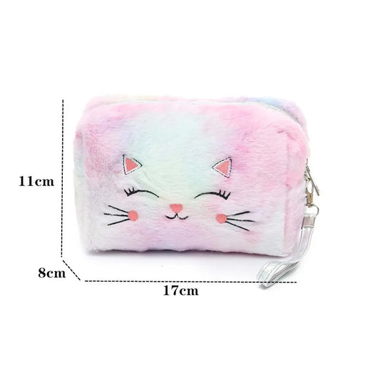 1 Piece Fur Cat Cosmetic Bag for Women Plush Girls Makeup Bag Female Beauty Case Travel Portable Toiletry Makeup Case Bag
