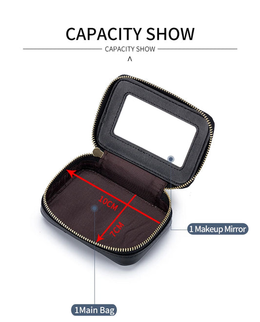 Echtes Leder Frauen Spiegel Kosmetik Make-up Tasche Reise kleine Aufbewahrungsbox Lippenstift Organizer Fall Mode Mini Geldbörse