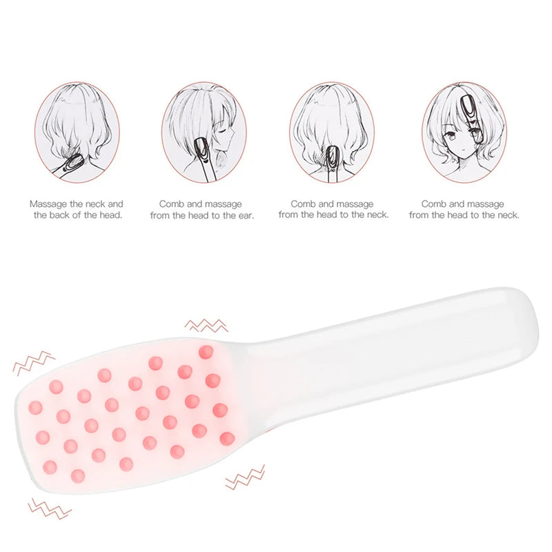 2. Sie werden mit einer benutzer freundlichen Ein-Knopf-Bedienung begrüßt. Das komfortable Griff design macht den Massage kamm leicht zu halten. Die 28 weichen Massage köpfe sind langlebig und massieren den Kopf effektiv,